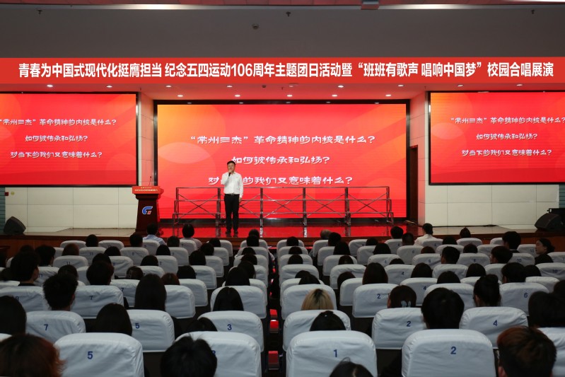 4月29日,我校举办“青春为中国式现代化挺膺担当”纪念五四运动106周年主题团日活动暨“班班有歌声 唱响中国梦”校园合唱展演。学校党委书记吴访升,党委委员、副校长张震宇,党委委员、党委组织部部长高江荣,机关党工委书记李洁琦、党委学生工作部部长凌琳、工会主席胡艳妹、校团委书记朱鹏,各二级学院党总支书记、副书记、分团委书记以及团员青年代表500余人共同参与本次活动。活动由团委挂职副书记周家钰主持。