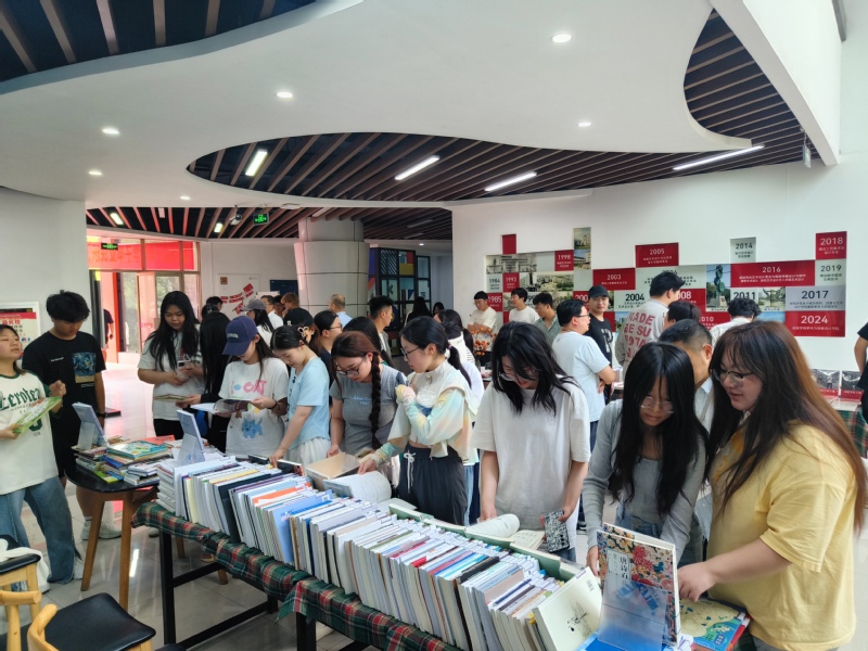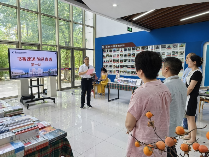 为进一步提升图书馆资源服务效能,深化阅读推广工作,我校图书馆创新推出“书香速递·院系直通”系列活动,旨在将丰富的图书资源直接送达各院系,为大家提供“现场借阅 + 新书选购”的一站式上门服务,营造校园浓厚的阅读氛围。2025年6月18日下午,“书香速递·院系直通”活动首站在8号楼的创意设计学院和服装与时尚设计学院举办。校党委委员、副院长张文明,创意设计学院党总支书记祝燕芳、院长李方联出席活动,活动由图书馆馆长马晓明主持。
