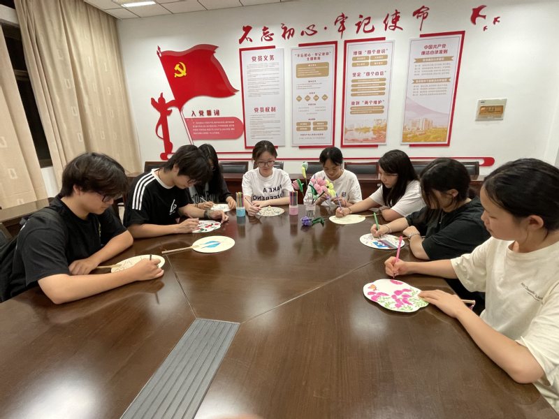 6月20日,数字商贸学院的会议室化作热闹的手作工坊,一场以“巧手筑梦,情暖洑家”为主题的“两年两访‘山这边’”暑期三下乡出征准备活动在此举行。队员们用扭扭棒编织立体花束,以水彩笔在扇面勾勒花鸟人物,为洑家村的村民们精心准备特色手工艺品。