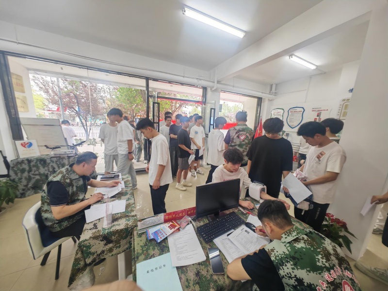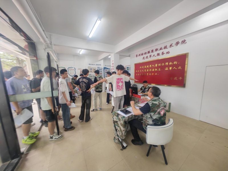 为扎实推进2025年秋季大学生征兵工作,严把兵员质量第一关,我校于6月19日组织开展征兵初审初检工作。此次初检地点设在校园退役军人服务站、征兵工作站,由校人武部唐建民老师担任总检负责人,4名退役士兵志愿者全程参与现场服务,为应征学子提供政策咨询和流程引导。