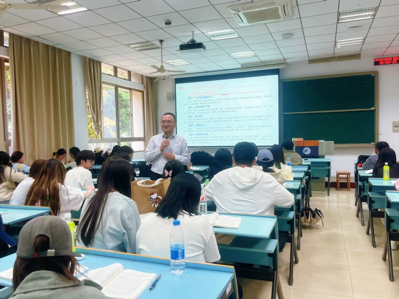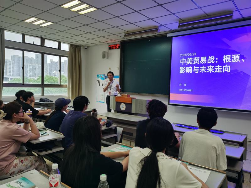 党委副书记、校长洪霄以“中美贸易战:根源、影响和未来走向”为主题,为同学们带来了一场高屋建瓴的思政课。洪院长从历史和现实的角度出发,深入分析了中美贸易战的根源,指出贸易战背后深层次的政治、经济和战略因素。他详细阐述了贸易战对我国经济、产业以及全球经济格局的影响,引导同学们全面、客观地看待这一国际经济事件。在探讨未来走向时,洪院长鼓励同学们保持理性和乐观,相信我国有能力通过自身的发展和国际合作应对挑战,实现经济的持续稳定增长。