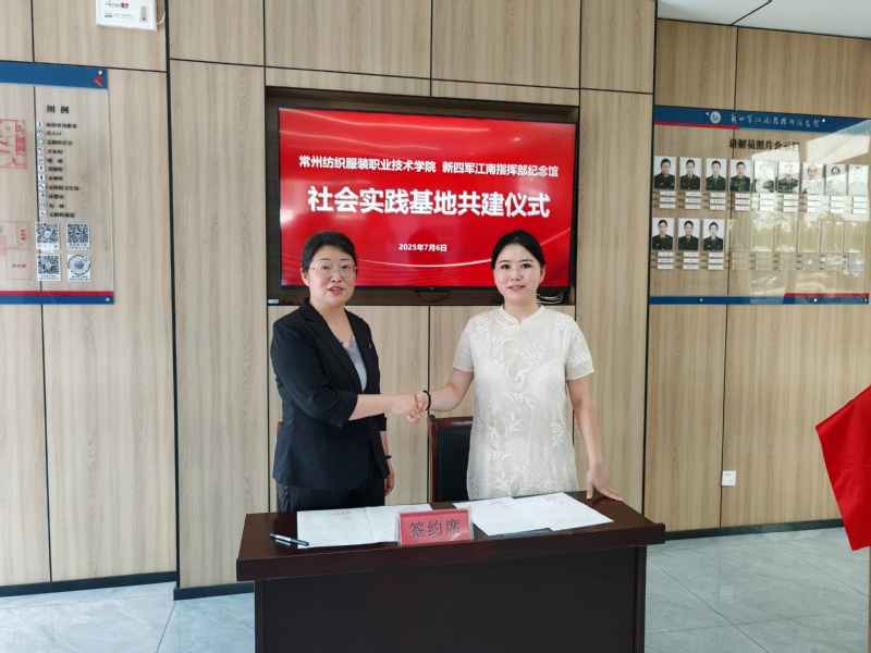 在庄严肃穆的纪念馆广场,实践团成员与溧阳市退役军人代表、现役官兵代表及"水西红"青少年志愿讲解员共同参加了升国旗仪式。随后,纪念馆张燕馆长与创意设计学院肖雯老师共同签署了共建协议,并为“大学生社会实践基地”揭牌。