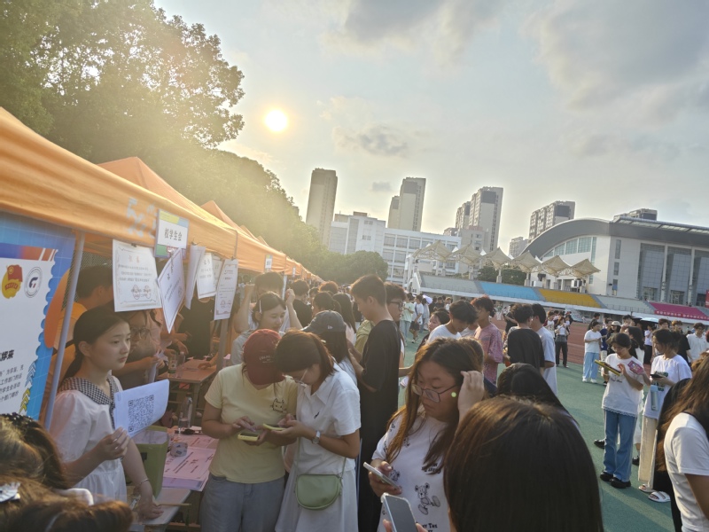 骄阳正好,青春飞扬。9月17日下午,学校足球场人潮涌动,“织梦未来,共赴星河”2025年学生组织和学生社团招新展示正式启动,作为2025级新生入学教育的其中一个内容,各个组织尽展风采,吸引众多同学驻足咨询。