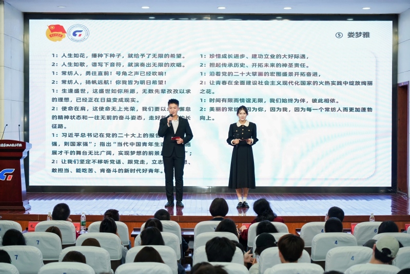 10月10日晚,由团委主办的2025年常纺院“经纬织梦”校园文化系列活动——“青春为铭,声颂山河”第十八届校园主持人大赛在校务中心图文报告厅圆满落幕。活动邀请学校工会主席胡艳妹、国家普通话测试员李丽明副教授、学生处副处长李鹏、语文教研室主任鲍庆忠副教授和马克思主义学院教师王瑶担任评委,团委全体成员、二级学院团委书记和300余名学生观众共同参加活动。经过初赛、复赛的层层选拔,共有15位选手脱颖而出,站在了决赛的舞台。